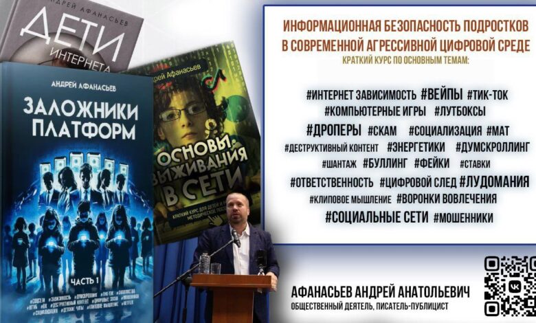 Все эти, а также многие другие вопросы мы обсудим в рамках встречи с общественным деятелем, писателем-публицистом и автором книг «Дети интернета», «Основы выживания в сети» и «Заложники платформ» Андреем Анатольевичем Афанасьевым.